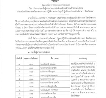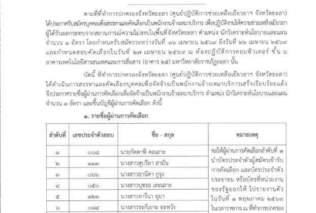 - ปลัดจังหวัดยะลา ตรวจเยี่ยม พบปะผู้เข้าสอบคัดเลือกบุคคลเป็นพนักงานจ้างเหมาบริการ ปฏิบัติงานประจำศูนย์ปฏิบัติการช่วยเหลือเยียวยาจังหวัดยะลา