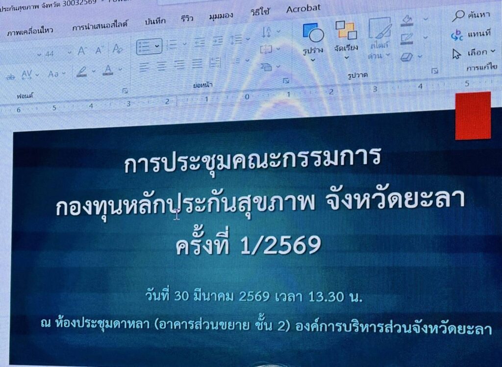 ผู้ว่าราชการจังหวัดยะลา มอบหมายให้ปลัดจังหวัดยะลาเข้าร่วมประชุมคณะกรรมการกองทุนหลักประกันสุขภาพ จังหวัดยะลา ครั้งที่ 1/2569 โดยมีนายมุขตาร์ มะทา นายก อบจ.ยะลา/ประธานกรรมการกองทุนหลักประกันสุขภาพ จังหวัดยะลา เป็นประธาน และมีหัวหน้าส่วนราชการ, คณะกรรมการกองทุนฯ เข้าร่วม ณ ห้องประชุมดาหลา องค์การบริหารส่วนจังหวัดยะลา อ.เมืองยะลา จ.ยะลา