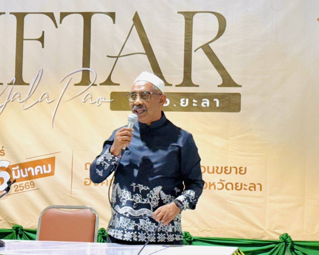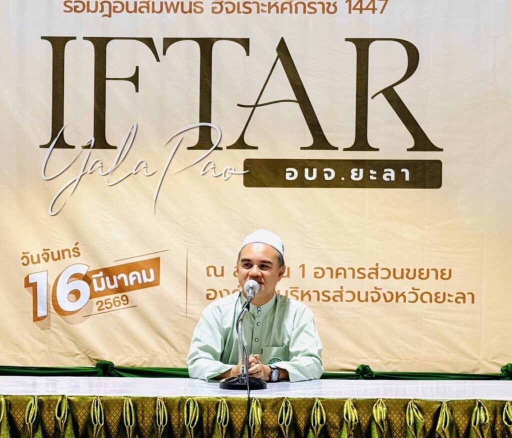 วันจันทร์ที่ 16 มีนาคม 2569 ตั้งแต่เวลา 17.30 น. นายโอฬาร บิลสัน ปลัดจังหวัดยะลา เข้าร่วมกิจกรรมละศิลอด “อบจ.ยะลา รอมฎอนสัมพันธ์ 1447 H.” จัดโดย อบจ.ยะลา โดยมีวัตถุประสงค์ เพื่อส่งเสริม ทำนุบำรุงศาสนกิจ และสร้างความสัมพันธ์อันดีระหว่างหน่วยงานภาครัฐ ภาคเอกชน และภาคประชาสังคม โดยมี นายมุขตาร์ มะทา นายก อบจ.ยะลา กล่าวต้อนรับ, นายมูฮัมมัด ศานติภิมุข รอง ผวจ.ยะลา กล่าวพบปะ, นายมะหะมะ วาแมดีซา ประธานสภา อบจ.ยะลา กล่าวพบปะ และมีสมาชิกสภา อบจ.ยะลา, หน.ส่วนราชการ, นายอำเภอรามัน, นายอำเภอกาบัง, ข้าราชการ เจ้าหน้าที่ อบจ.ยะลา, สื่อมวลชน และภาคส่วนต่างๆ เข้าร่วม ณ ลานชั้น 1 (อาคารส่วนขยาย) องค์การบริหารส่วนจังหวัดยะลา อ.เมืองยะลา จ.ยะลา