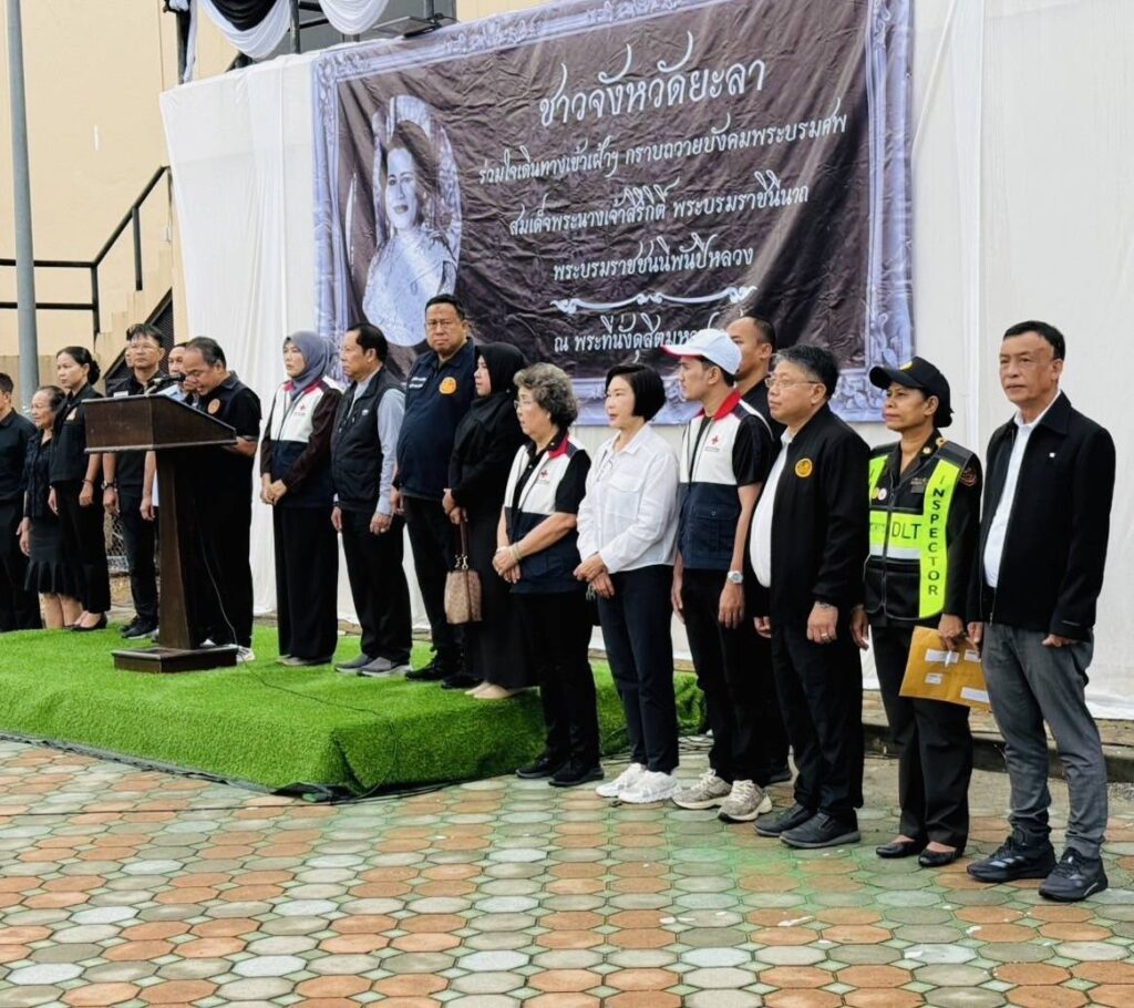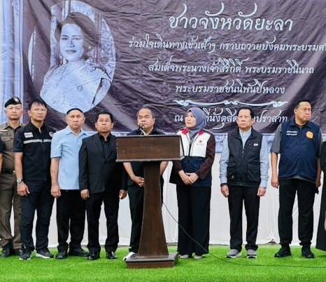 วันอังคาร ที่ 16 ธันวาคม 2568 ตั้งแต่เวลา 07.00 น. นายโอฬาร บิลสัน ปลัดจังหวัดยะลาเข้าร่วมปล่อยขบวนรถโดยสารนำประชาชนในพื้นที่จังหวัดยะลาเดินทางไปเข้าเฝ้าฯ กราบถวายบังคมพระบรมศพ สมเด็จพระนางเจ้าสิริกิติ์ พระบรมราชินีนาถ พระบรมราชชนนีพันปีหลวง ในวันที่ 17 ธันวาคม 2568 ณ พระที่นั่งดุสิตมหาปราสาท โดยมีผู้ว่าราชการจังหวัดยะลา เป็นประธาน รองผู้ว่าราชการจังหวัด, หัวหน้าส่วนราชการ, หัวหน้าหน่วยงาน, ผู้บริหารท้องถิ่น, ผู้แทนนายอำเภอ, ผู้ช่วยป้องกันจังหวัด เจ้าพนักงานปกครอง ข้าราชการและเจ้าหน้าที่ที่เกี่ยวข้องเข้าร่วมฯ ณ บริเวณหน้าอาคารพระเศวตสุรคชาธาร (สนามโรงพิธีช้างเผือก) เทศบาลนครยะลา อ.เมืองยะลา จ.ยะลา