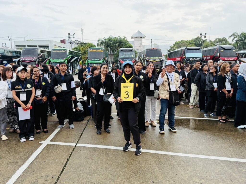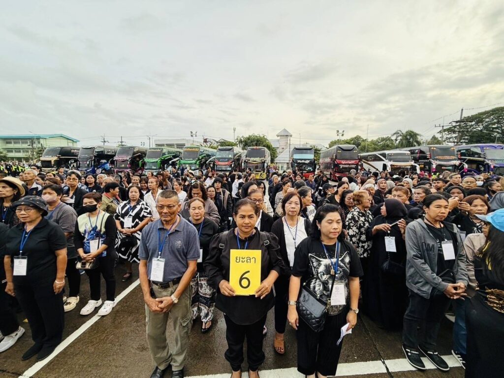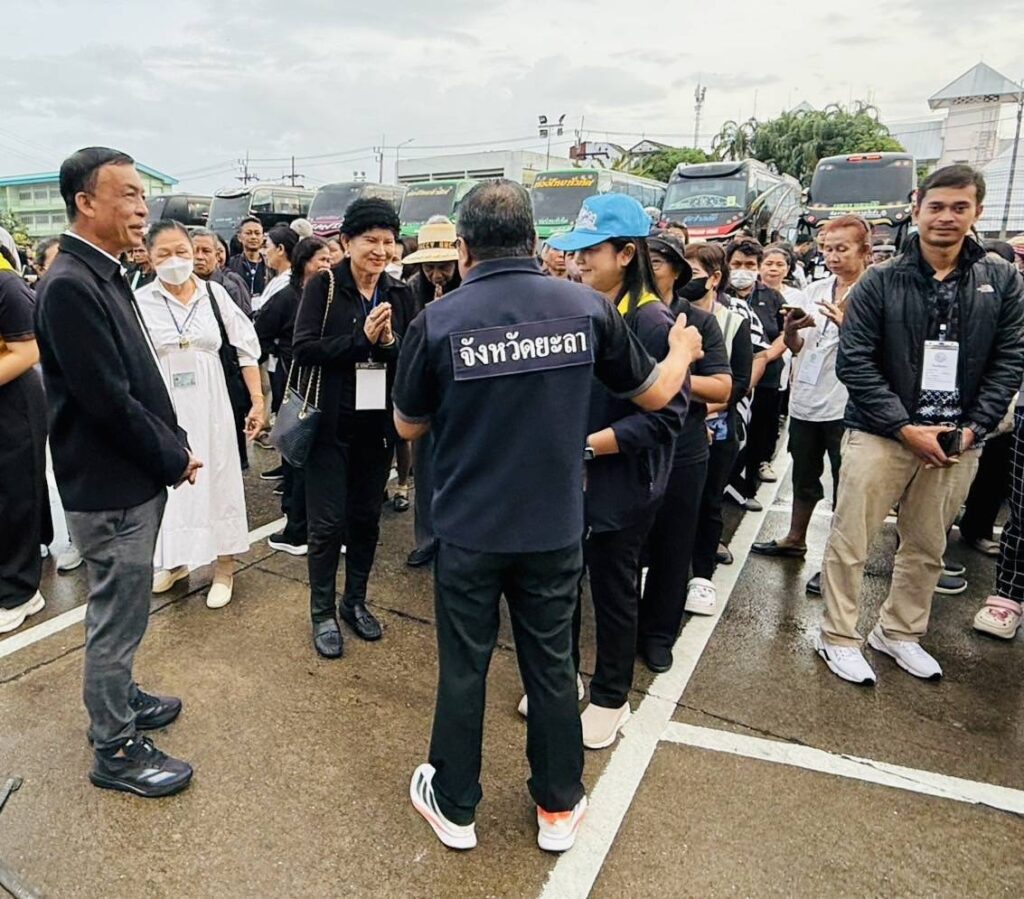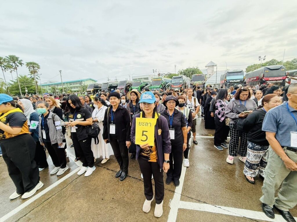 ปล่อยขบวนรถโดยสารนำประชาชนในพื้นที่จังหวัดยะลาเดินทางไปเข้าเฝ้าฯ กราบถวายบังคมพระบรมศพ สมเด็จพระนางเจ้าสิริกิติ์ พระบรมราชินีนาถ พระบรมราชชนนีพันปีหลวง