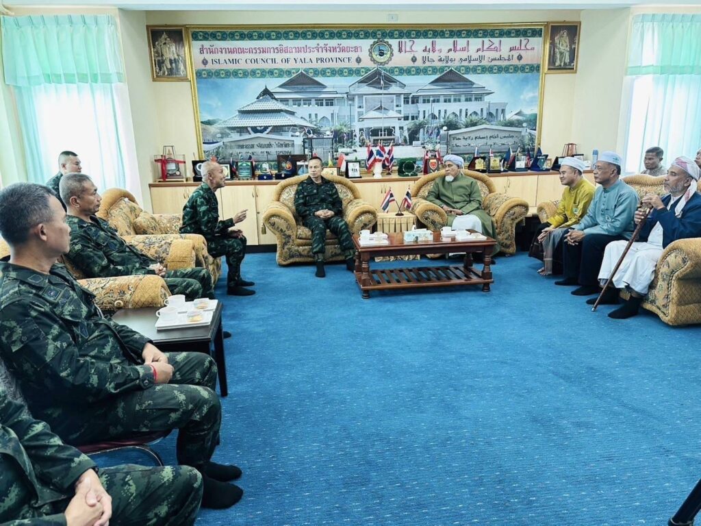 วันพฤหัสบดี ที่ 30 ตุลาคม 2568 ตั้งแต่เวลา 14.30 น. ผู้ว่าราชการจังหวัดยะลามอบหมายให้นายโอฬาร บิลสัน ปลัดจังหวัดยะลาร่วมต้อนรับ พลโท นรธิป โพยนอก แม่ทัพภาคที่ 4 พร้อมคณะ ในโอกาสเดินทางมาพบปะเยี่ยมเยียน ประธานกรรมการอิสลามประจำจังหวัดยะลา โดยมี ผบ.ฉก.ยะลา, คณะกรรมการอิสลามประจำจังหวัด, รอง ผบ. ฉก.ยะลา, รองผู้บังคับการตำรวจภูธรจังหวัดยะลา, ผู้ช่วยป้องกันจังหวัดยะลา เจ้าหน้าที่ปกครอง กลุ่มงานความมั่นคง ที่ทำการปกครองจังหวัดยะลา และเจ้าหน้าที่ที่เกี่ยวข้องเข้าร่วมฯ ณสำนักงานคณะกรรมการอิสลามประจำจังหวัดยะลา ต.ท่าสาป อ.เมืองยะลา จ.ยะลา