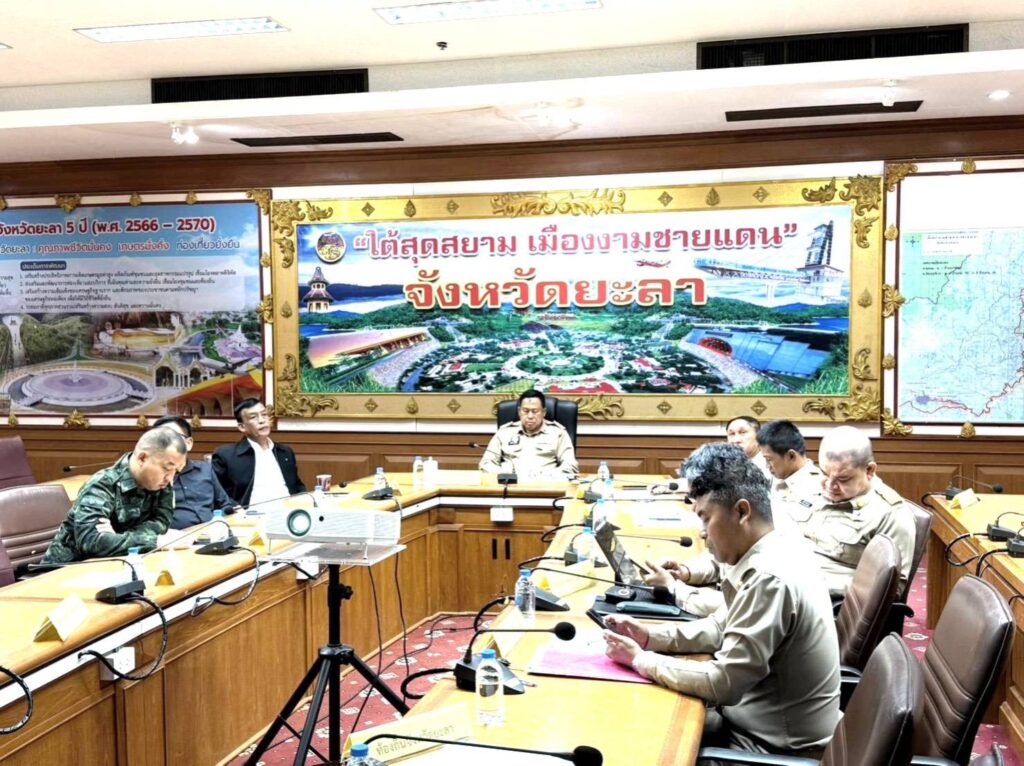 วันจันทร์ ที่ 8 ธันวาคม 2568 ตั้งแต่เวลา 09.00 น. นายโอฬาร บิลสัน ปลัดจังหวัดยะลาเข้าร่วมการประชุมกองบัญชาการป้องกันและบรรเทาสาธารณภัยแห่งชาติ (บกปภ.ช.) เพื่อติดตามสถานการณ์และการให้ความช่วยเหลือผู้ประสบภัยในพื้นที่ภาคใต้ โดยมี นายศักดิ์ดา วิเชียรศิลป์ รัฐมนตรีช่วยว่าการกระทรวงมหาดไทย เป็นประธาน ณ ห้องกองบัญชาการป้องกันและบรรเทาสาธารณภัยแห่งชาติ อาคาร 3 ชั้น 5 ปภ. และผ่านสื่ออิเล็กทรอนิกส์ ในส่วนของจังหวัดยะลา มีนายมูฮัมมัด ศานติภิมุข รอง ผวจ.ยะลา เป็นประธาน มีหัวหน้าส่วนราชการ, หัวหน้าหน่วยงาน, ปลัดจังหวัดยะลา, ป้องกันจังหวัดยะลา, ผู้แทนนายอำเภอ, ผู้ช่วยป้องกันจังหวัด, ข้าราชการ และเจ้าหน้าที่ที่เกี่ยวข้องเข้าร่วมฯ ณ ห้องประชุมพิกุล อาคาร 3 ชั้น 3 ศาลากลางจังหวัดยะลา