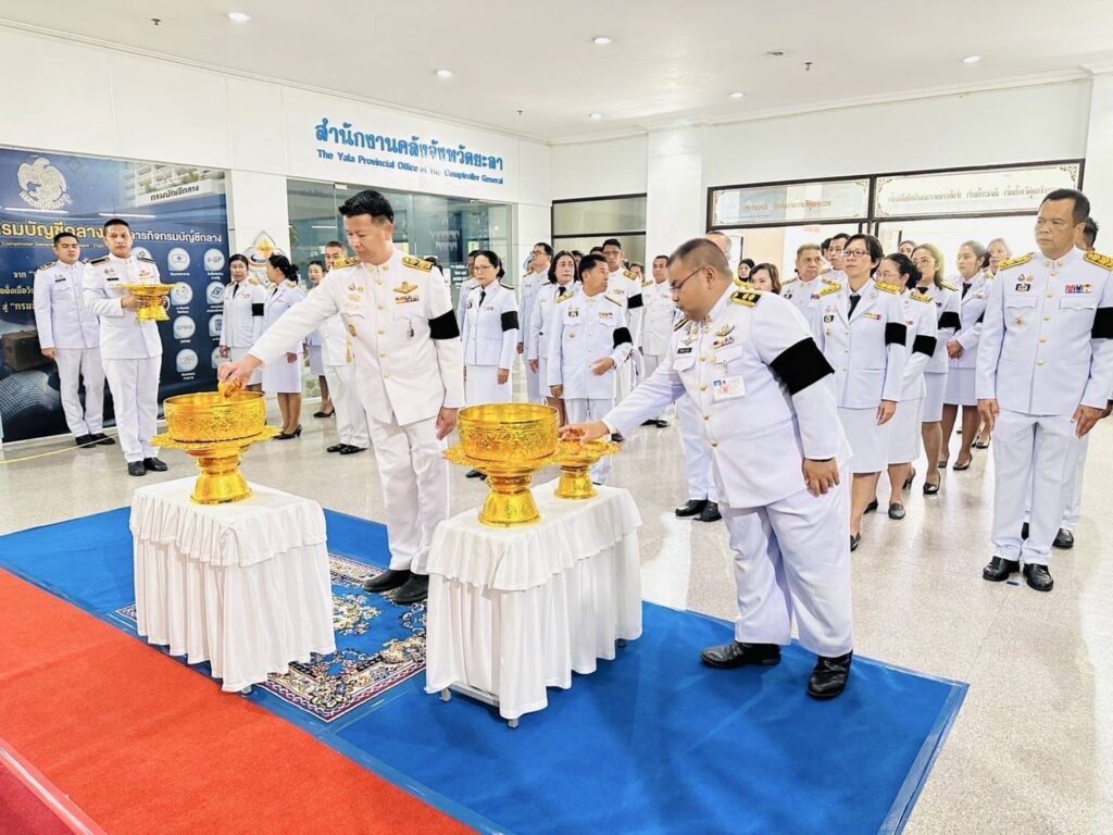 วันอาทิตย์ ที่ 26 ตุลาคม 2568 เวลา 09.00 น. นายอำนาจ ชูทอง รองผู้ว่าราชการจังหวัดยะลา รักษาราชการแทนผู้ว่าราชการจังหวัดยะลา เป็นประธานในพิธีถวายน้ำสรง พระบรมศพเบื้องหน้าพระฉายาลักษณ์ สมเด็จพระนางเจ้าสิริกิติ์ พระบรมราชินีนาถ พระบรมราชชนนีพันปีหลวง และลงนามแสดงความไว้อาลัย น้อมรำลึกในพระมหากรุณาธิคุณของสมเด็จพระนางเจ้าสิริกิติ์ พระบรมราชินีนาถ พระบรมราชชนนีพันปีหลวง โดยมี รอง ผวจ.ยะลา, หัวหน้าส่วนราชการ, ผู้บริหาร อปท., ปลัดจังหวัด, นายอำเภอ, จ่าจังหวัด, ป้องกันจังหวัด, ผู้ช่วยป้องกันจังหวัด, ผบ.ร้อย อส. จ.ยะลา, ข้าราชการ เจ้าหน้าที่หน่วยงานต่างๆ, กรรมการและสมาชิกเหล่ากาชาดจังหวัดยะลา, สมาชิก อส. และประชาชนในพื้นที่จังหวัดยะลา เข้าร่วมฯ ณ ห้องโถงอาคาร 3 ชั้น 1 ศาลากลางจังหวัดยะลา อ.เมืองยะลา จ.ยะลา