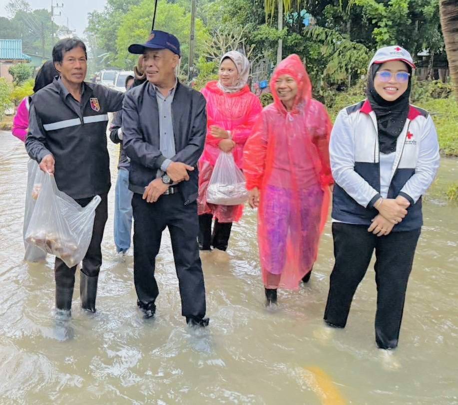 วันศุกร์ที่ 28 พฤศจิกายน 2568 ตั้งแต่เวลา 16.45 น. นายโอฬาร บิลสัน ปลัดจังหวัดยะลา พร้อมด้วยนางนิอัสนี บิลสัน รองนายกเหล่ากาชาดจังหวัดยะลา, กรรมการและสมาชิกเหล่ากาชาดจังหวัดยะลา, เจ้าหน้าที่บริหารงานทั่วไป, จิตอาสาสภากาชาดไทย, ทีมงานเทศบาลตำบลยุโป และนักศึกษามหาวิทยาลัยราชภัฏยะลา ลงพื้นที่ไปเยี่ยมให้กำลังใจผู้ประสบอุทกภัย พร้อมมอบอาหารกล่องและน้ำดื่ม ณ พื้นที่ บ้านบาโด ม.3 ต.ยุโป อ.เมืองยะลา จ.ยะลา
