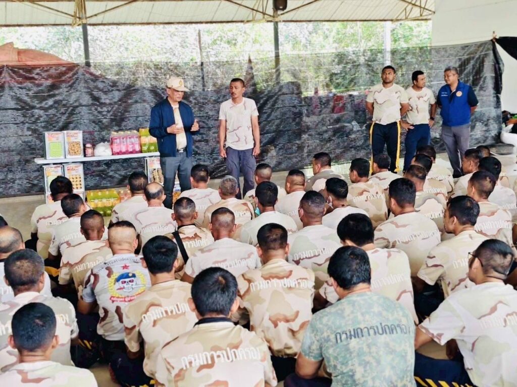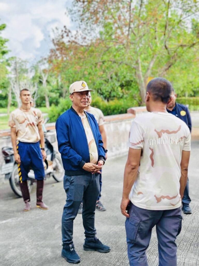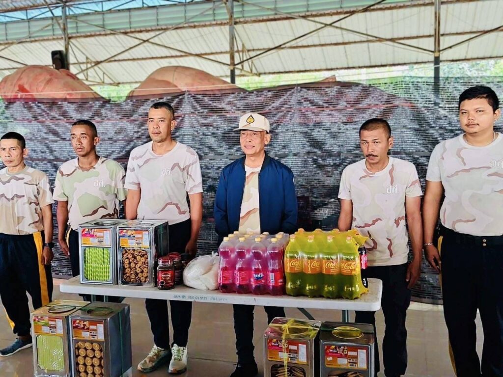 ในการนี้ ได้พบปะให้กำลังใจและมอบชุดของบริโภคให้แก่กำลังพล รวมทั้งได้ไปเยี่ยมโซนที่พักของกำลังพลระหว่างปฏิบัติหน้าที่ ตามจุดที่พักต่างๆ เพื่อเป็นขวัญกำลังใจ ณ มูลนิธิพุทธมลฑลจังหวัดสงขลา